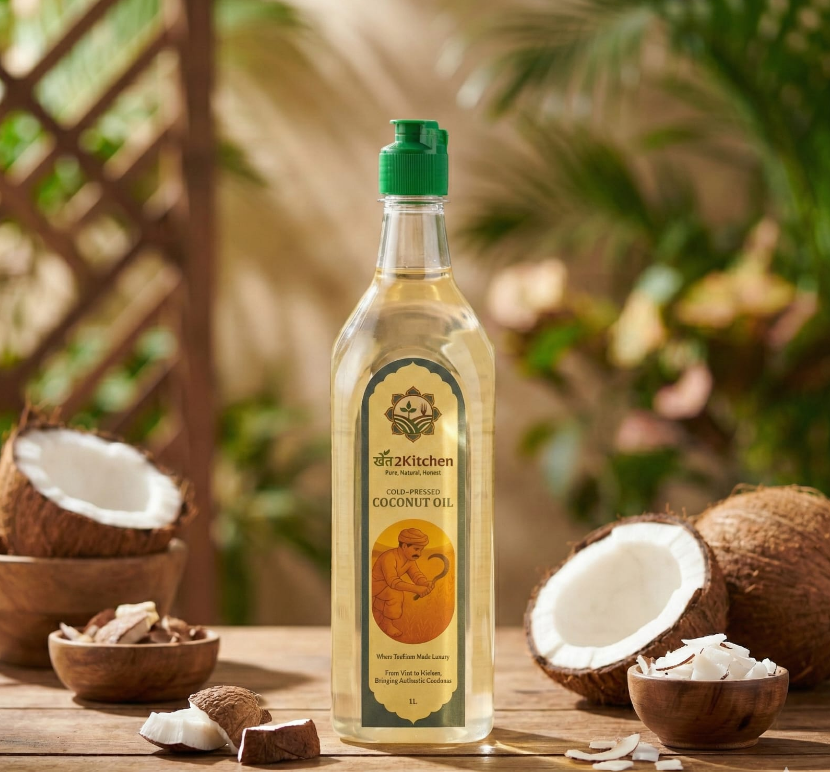 Khet2Kitchen Cold Pressed Coconut Oil is pure and unrefined, extracted using a traditional low-temperature pressing method to retain its natural aroma and smooth texture. Made without added preservatives or artificial additives, it delivers authentic flavour and everyday versatility for your kitchen.